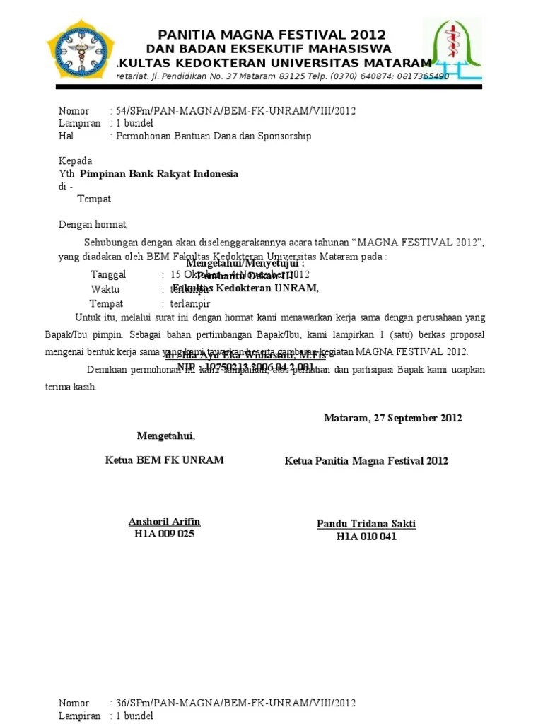Contoh Surat Permohonan Sponsor Dana : 35 Contoh Surat Permohonan Sponsor Dana Info Dana Tunai : Surat permohonan bantuan dana adalah surat yang menyatakan bahwa yang membaut bermaksud meminta bantuan dana dari sumber dana.. 10+ contoh surat permohonan sponsor untuk berbagai keperluan contoh surat permohonan bantuan dana, beasiswa dan sponsorship … Ada banyak bentuk surat permohonan diantaranya, surat permohonan dana, surat permohonan izin cuti, surat permohonan kerjasama, surat permohonan . Contoh surat permohonan dinas, contoh surat permohonan bantuan, contoh surat permohonan izin, contoh surat permohonan dana ke perusahaan. Contoh surat permohonan bantuan dana kegiatan yang . Dengan ini kami bermaksud mengajukan permohonan bantuan dana guna pembelian alat drum band untuk memperlancar kegiatan tersebut.